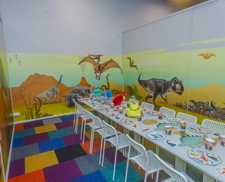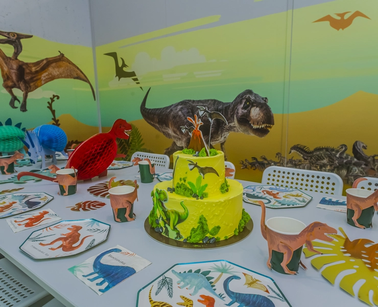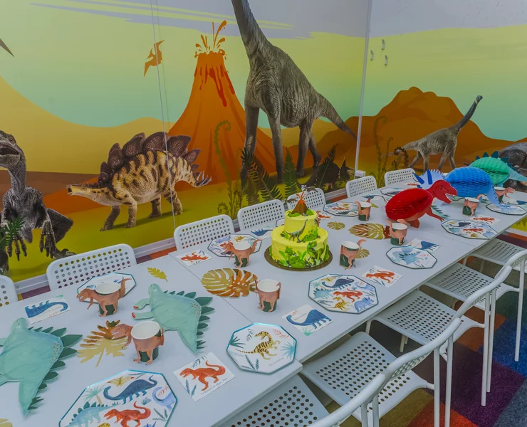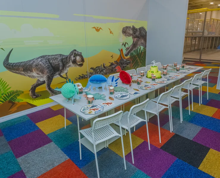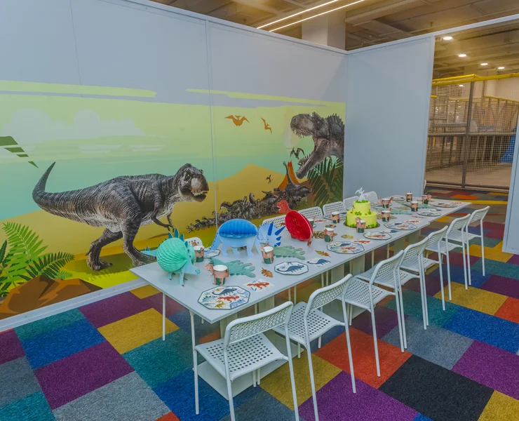 Tiranozauras... Didelis jis ar mažas? Geras ar blogas? Pterodaktilis – skraido ar ropoja, valgo žolę ar minta kitais gyvūnais? Pterozaurai – su sparnais ar su iltimis? Ar tik man vienam sunku ištarti tuos pavadinimus?.. O taip... Žinau... Vaikai dinozaurus dievina. Tiek berniukai, tiek mergaitės. Tik niekaip nesuprantu, kodėl... Šis gimtadienio kambarys – dinozaurų fanams! Kur ir kada gyveno dinozaurai? Galime tik spėlioti... Vilniuje, Kaune, Panevėžyje, Ukmergėje ar Utenoje? Nemenčinėje ar Tarandėje? Riešėje ar Naujojoje Vilnioje? O koks skirtumas? Svarbu, kad gimtadienio kambarys ADVENTICA šeimos pramogų parke – jūsų draugams ir draugėms. Moksleiviemas, darželinukams, grupiokams ir sporto būrelių draugams! Viskas yra žaidimas!
