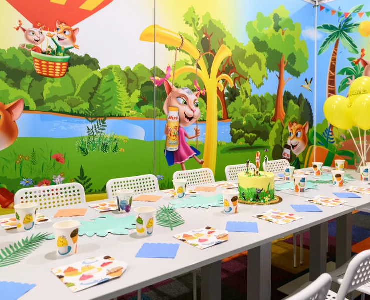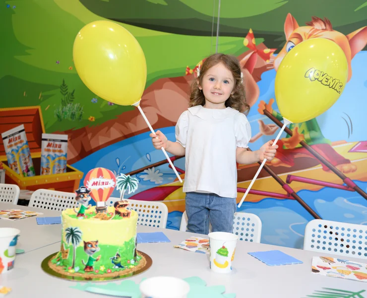 Šiame kambaryje – tikri nuotykiai su Miau herojais! Oro balionai, piratų žemėlapiai, šėlstanti upė ir begalė linksmų žaidimų. Kas ieško lobio, kas plaukia baidare, o kas jau laukia torto – viskas čia juda, žaidžia ir kviečia švęsti. Kambarys kupinas spalvų, gyvumo ir šventinės nuotaikos – kaip tik mažiems smalsuoliams ir jų geriausiems draugams. Tinka tiek mergaitėms, tiek berniukams – juk linksmybės neturi taisyklių!