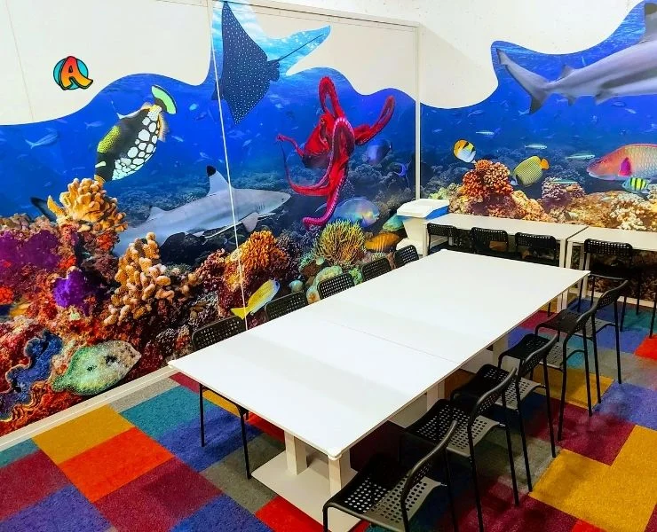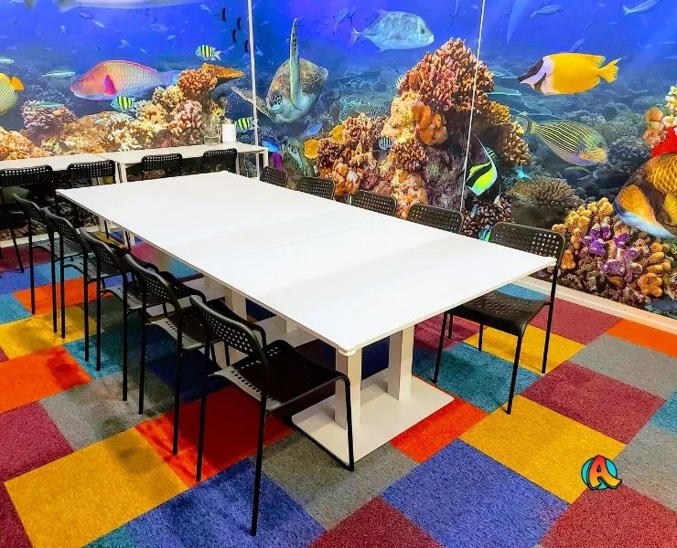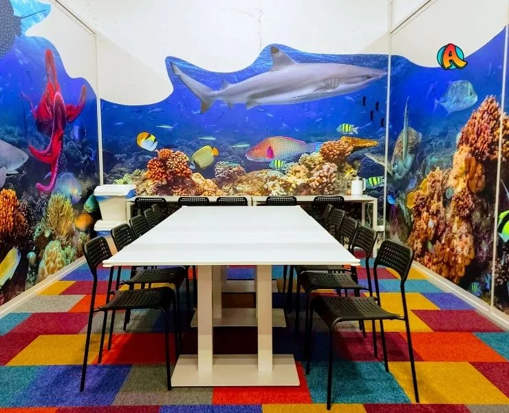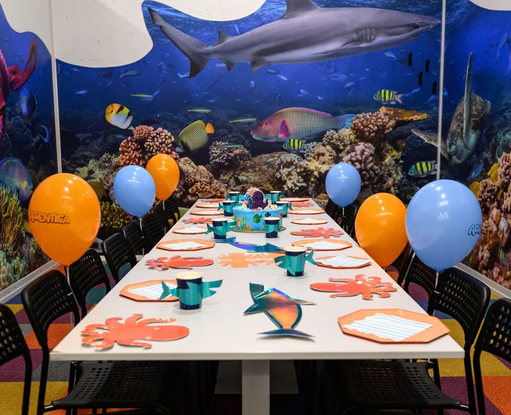 Bent 10 metrų po vandeniu. Čia vyrauja koralai, plaukioja spalvingosios žuvytės, bet kartu grobio tyko ir didysis ryklys. Čia sutiksite vandens vėžlį, ryškų aštuonkojį bei paslaptingąją rają. Patiks visiems – ir dideliems, ir mažiems! Ir berniukams, ir mergaitėms. Gimtadienio kambarys Vilniuje, šeimos pramogų parke ADVENTICA. Bet čia švenčia ir svečiai iš Kauno, Klaipėdos, Šiaulių, Alytaus, Marijampolės, Panevėžio, Ukmergės, Utenos. Čia renkasi tiek stambios, tiek smulkios žuvys iš Latvijos ir Estijos pajūrio bei iš Baltarusijos ir Lenkijos ežerų. Povandeninis pasaulis – tai stebuklas!
